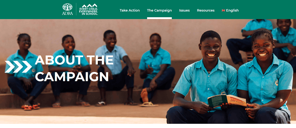 Mit der Initiative “Every child. Everywhere. In School.” (Jedes Kind, überall, hat Anrecht auf Schulbildung), des Hilfswerks ADRA und der protestantischen Kirche der Siebenten-Tags-Adventisten, wurden global während mehr als einem Jahr über 1,1 Millionen Unterschriften für den weltweiten Zugang aller Kinder zu schulischer Bildung gesammelt.