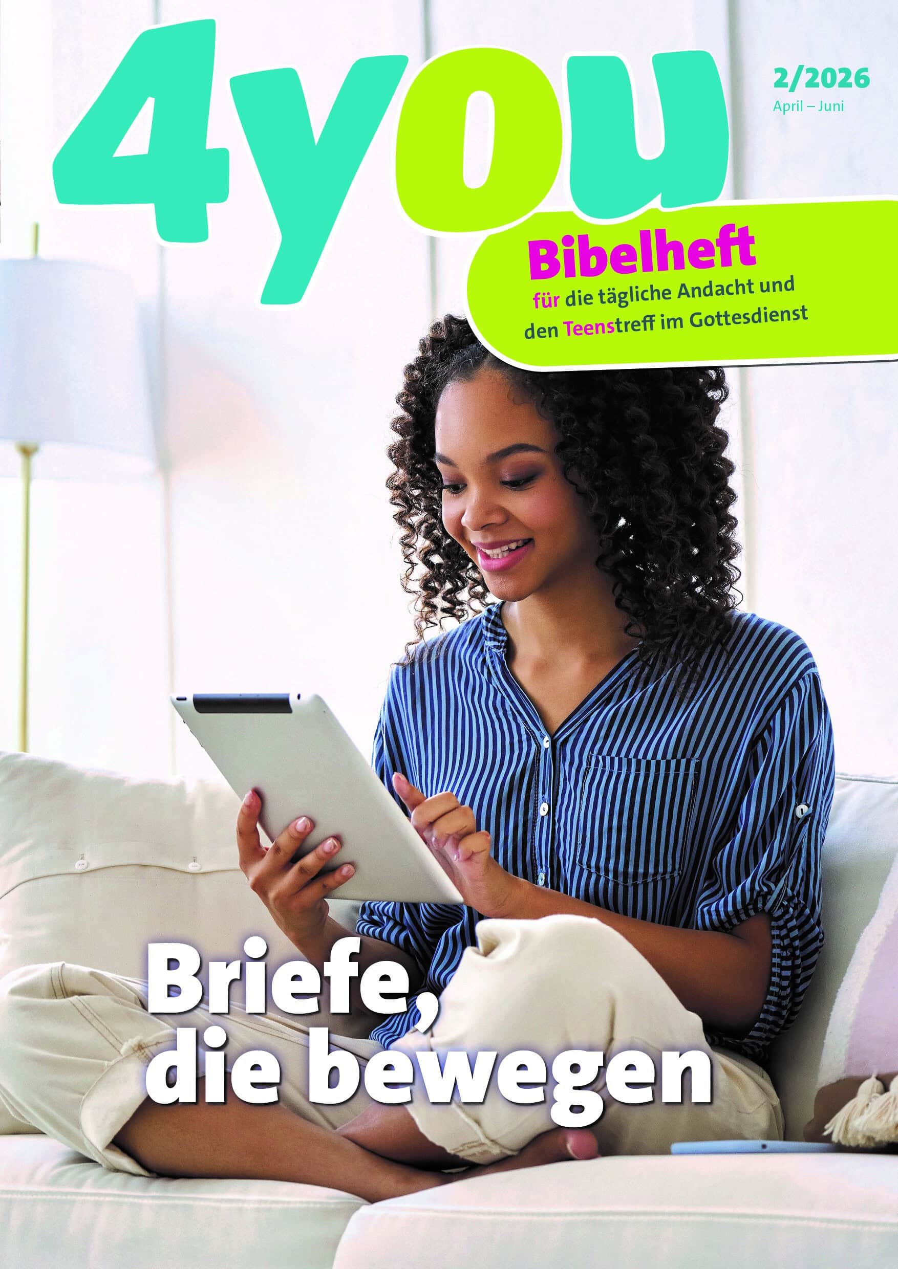 ‘4you’ ist ein durchgehend farbig bebildertes Bibelheft für die tägliche Andacht der 12- bis 15-Jährigen und für das Gespräch im Teenstreff im Gottesdienst.