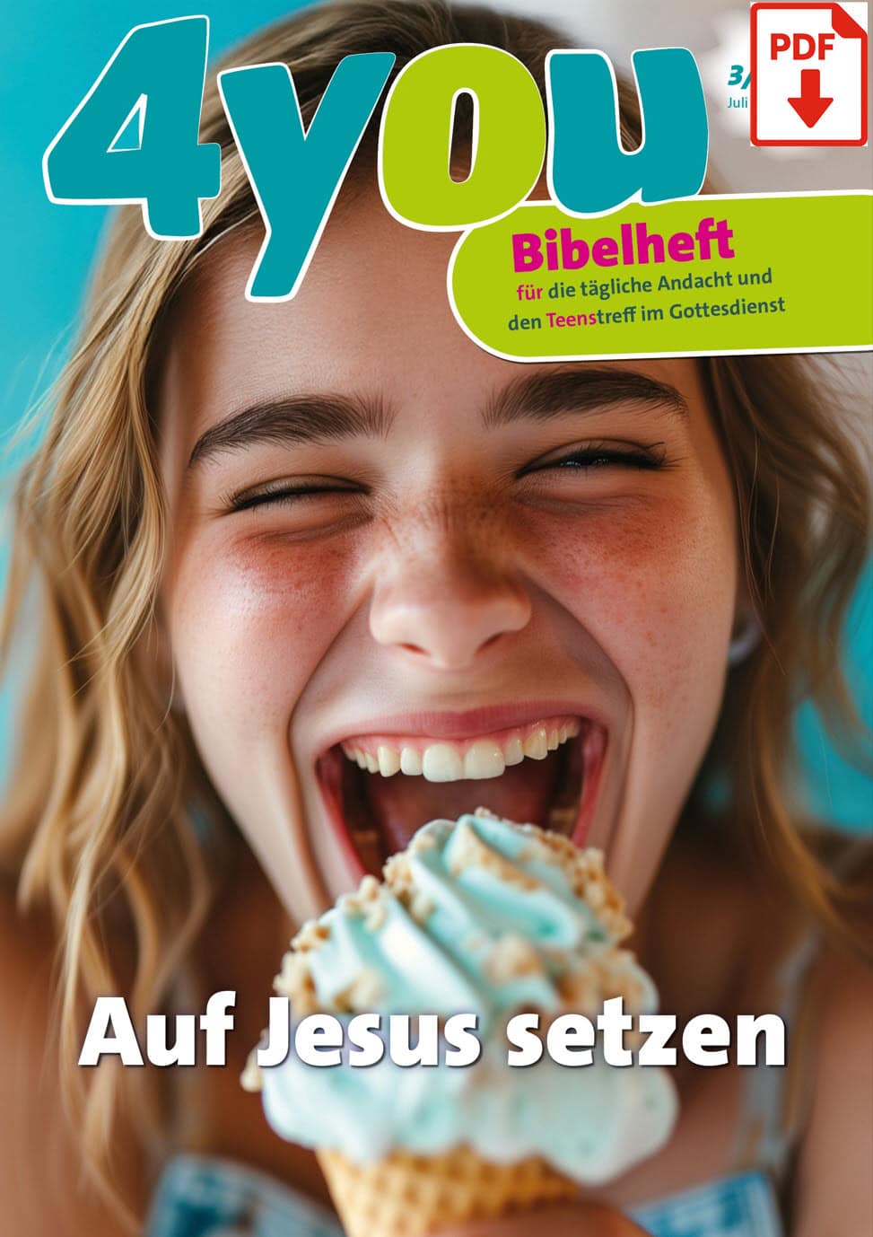 4you ist ein durchgehend farbig bebildertes Bibelheft für die tägliche Andacht der 12- bis 15-Jährigen und für das Gespräch im Teenstreff im Gottesdienst.