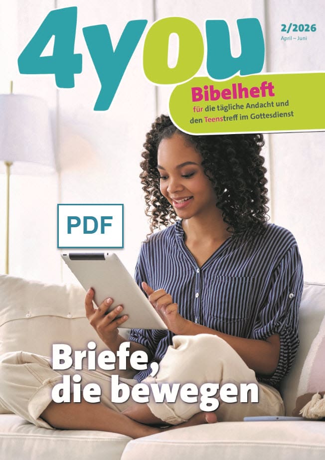 ‘4you’ ist ein durchgehend farbig bebildertes Bibelheft für die tägliche Andacht der 12- bis 15-Jährigen und für das Gespräch im Teenstreff im Gottesdienst.