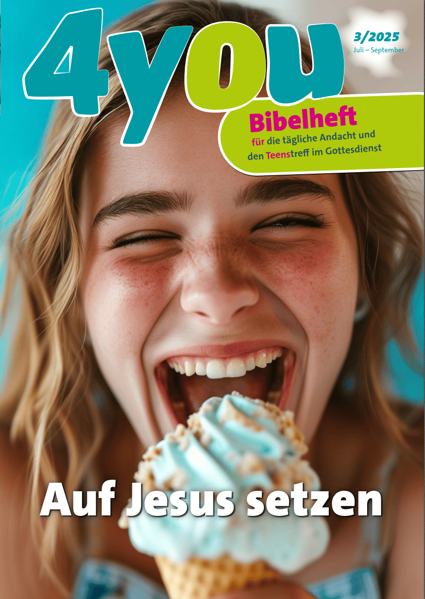 4you ist ein durchgehend farbig bebildertes Bibelheft für die tägliche Andacht der 12- bis 15-Jährigen und für das Gespräch im Teenstreff im Gottesdienst.