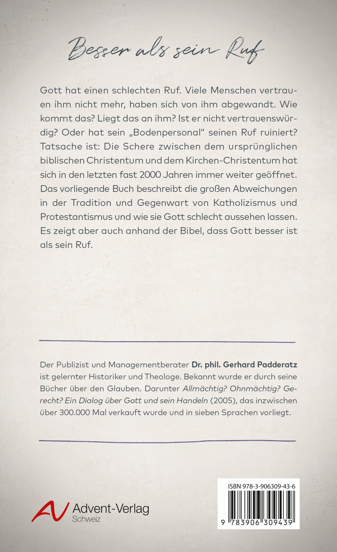 Gott hat einen schlechten Ruf. Viele Menschen vertrauen ihm nicht mehr, haben sich von ihm abgewandt. Wie kommt das? Liegt das an ihm? Ist er nicht vertrauenswürdig? Oder hat sein „Bodenpersonal“ seinen Ruf ruiniert? Tatsache ist: Die Schere zwischen dem ursprünglichen biblischen Christentum und dem Kirchen-Christentum hat sich in den letzten fast 2000 Jahren immer weiter geöffnet. Das vorliegende Buch beschreibt die großen Abweichungen in der Tradition und Gegenwart von Katholizismus und Protestantismus und wie sie Gott schlecht aussehen lassen. Es zeigt aber auch anhand der Bibel, dass Gott besser ist als sein Ruf.